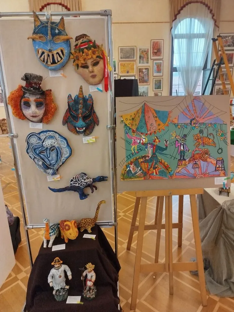 От художественной школы № 3 представлены свыше 140 работ в самых разных техниках: акварель, гуашь, акрил, масляная и сухая пастель, цветные маркеры, карандаши, гелевые ручки, тушь, декоративно-прикладное искусство, керамика и скульптура.