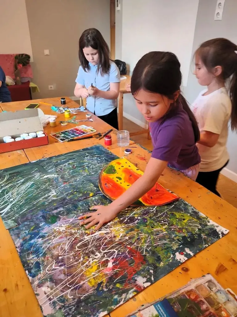«Ступеньки» оказались очень талантливыми и вдохновенными учениками. А Светлана Валерьевна, как настоящий капитан корабля, мягко направляла их фантазию, помогая смешивать краски на палитре так же смело, как человечество когда-то смело осваивать орбиту.
