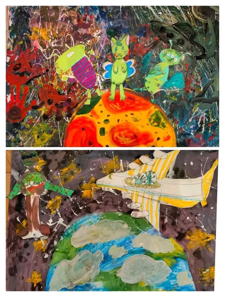 Главной задачей было не просто нарисовать ракету или планеты, а передать чувство полёта — то самое «Поехали!» Юрия Гагарина. Ребята рисовали звёздные пейзажи, невесомость и космические дали, которые они только что открыли для себя на уроке.