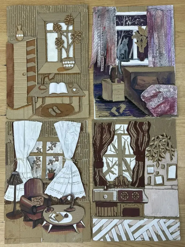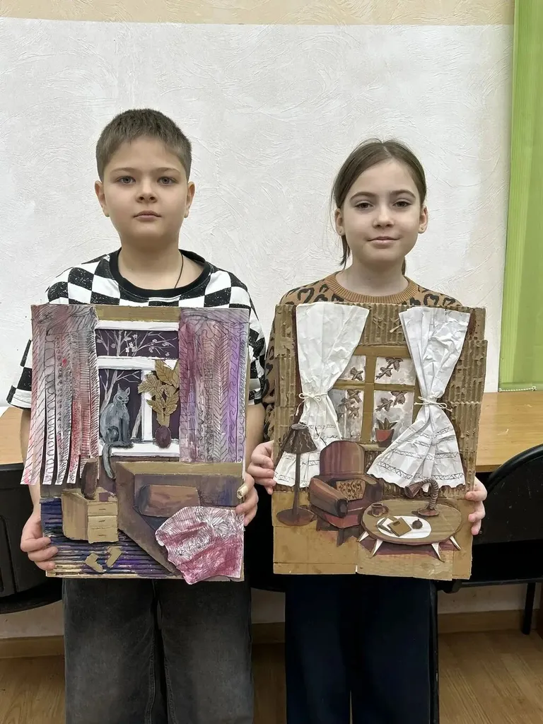 Ребята работали с картоном, бумагой и клеем, создавая удивительные объёмные комнаты своими руками. 🏠✨ Получилось очень атмосферно и талантливо! 👏🔥