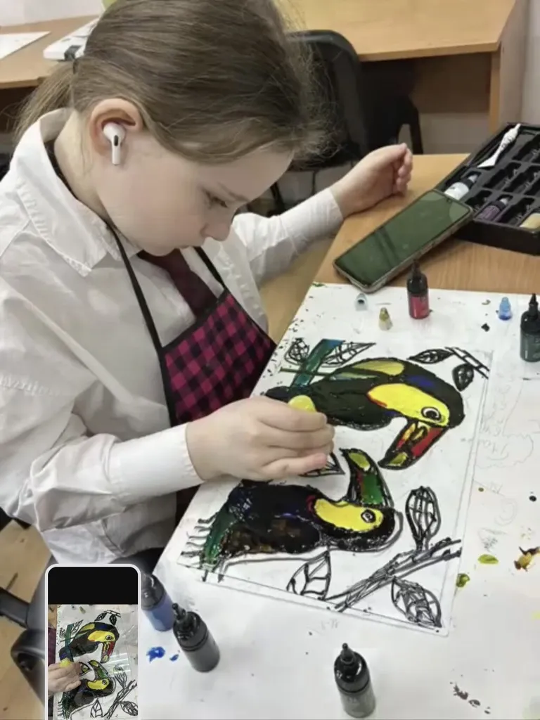 #ДетскаяХудожественнаяШкола№3 #ДХШ3 #Витраж #ВитражныеКраски #МорозкинаЕлизаветаСергеевна #РисованиеНаСтекле #НашиТаланты